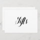 Sinal de casamento "Presentes" em estilo de caligrafia preto e branco simples e elegante.