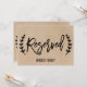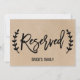 Este letreiro "reservado" rústico e sofisticado com caligrafia em estilo kraft falso é perfeito para um casamento moderno. O design é duplo lado (imprime em ambos os lados) e apresenta uma tipografia divertida e manuscrita com laços e espirais encantadores, rodeada por uma simples grinalda de ramo de oliveira. Use estes cartões para reservar cadeiras ou mesas na cerimônia ou recepção do seu casamento.