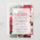 Christmas bridal shower invitation theme "Let's Be Merry Before She Gets Married" featuring elegant hand-painted red and green flowers with soft leafy accents, this design brings a romantic and feminine vibe perfect for Christmas gatherings, brunch showers, garden parties, and special pre-wedding celebrations. Customise the text to fit your event details and make it all yours.