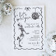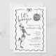 Get ready to groove with this Let's Boogie Skeleton Halloween Invitation! Featuring a hand-drawn dancing skeleton and funky disco ball graphic, this minimal black and white design brings a playful retro vibe to your spooky celebration. Perfect for both adults and kids, this stylish skeleton Halloween invitation sets the scene for a night of fright and funky fun. Whether you're planning a costume party or a laid-back bash, this unique Halloween party invite is sure to get guests in the dancing mood.