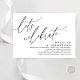 Mark the beginning of your forever with elegance using our romantic contemporary black and white theme wedding elopement happily ever after lunch, brunch, reception dinner party celebration invitation card, "Let's Celebrate". Perfect for couples extending their joyous occasion, this invitation exudes sophistication with a hint of playfulness, setting the stage for a memorable event. Adorned with a timeless modern script design theme, it adds a touch of refined charm to your festivities. Crafted by TeeshaDerrick, this invitation promises to beautifully capture your love story.