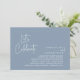 Elegantly announce your happily ever after with our modern classy wedding elopement reception dinner celebration invitation card, with card title "Let's celebrate". Tailored for couples continuing their love story, this invitation strikes a perfect balance of sophistication and charm, setting the scene for an unforgettable event. Featuring a modern contemporary script design, white text on dusty blue background, it adds a touch of timeless grace to your special day, this invitation is a stylish expression of your enduring love. This invitation card can be modify to meet your wedding brunch, lunch, dinner, party requirements.