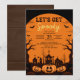 Diseño espeluznante para tu fiesta de Halloween!! Manda este lindo diseño para tu fiesta de halloween con la frase "Let's get Spooky" esta lindo diseño de invitacion de Halloween cuenta con tipografia moderna y de fondo un cementerio con calabazas de Halloween. No lo piense y aduqiera las suyas ahora.