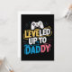 Design engraçado com um controlador de jogo e a citação "Leveled up to pai" (Levada até o ). Perfeito para pais pela primeira vez, assim como para o Dia do Pai.