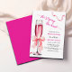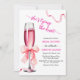 Um design elegante com um copo de champanhe, fitas cor-de-rosa e um roteiro moderno. Você pode personalizar este convite com seus próprios detalhes.