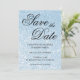 Foto brilhante azul clara com borrão para o seu casamento, salve as datas. A fonte preta decorativa "Salvar a Data" é um estilo clássico de caligrafia de rico, em conjunto com um estilo de fonte moderno. A brilho azul pálido salve as datas.