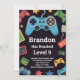 Level up the fun with this cool kids gaming birthday party invitation! Featuring a watercolor video game controller and bold modern lettering, this design is perfect for gamers who love to play and celebrate. Easily personalize it with your child’s name, age, party date, and details to create an invitation that’s ready to power up the excitement. Great for boys or girls who enjoy console games, online fun, or arcade-style parties!