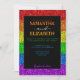 Personalize faux sparkly convidado com seus nomes e informações de casamento homossexuais. Celebre o seu amor com na moda único na mesma papelaria de casamento de gênero. Bandeja flexível LGBT em brilhos vibrantes vermelhos, laranja, amarelo, verde, azul e roxo vibrantes. *foto de faíscas não é uma falha real!