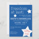 Celebre com seus amigos e vizinhos - seja por uma festa de 4 de julho ou apenas por uma reunião para celebrar o fim do distanciamento social e das quarantinas. A frente do convite é um azul patriótico com estrelas brancas e as palavras "Liberdade finalmente!". Preencha o resto do texto personalizando para sua própria reunião - basta usar os modelos fáceis. O verso é impresso com uma faixa vermelha e branca de bandeira para completar o olhar patriótico.