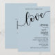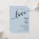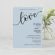 Light Blue Black Love Script Minimalist Wedding Invitation with QR code. This minimalist design features elegant script and clean typography, making it the perfect choice for the stylish, contemporary couple. Lovely atmospheric blue with contrasting black script brings modern sophistication. The back features a QR code to link to all your wedding details. If you prefer, delete the text and QR code for a plain card back. Use capital letters when inputting your names, as shown in the sample, if you like the design as is. Contact the designer for any customization questions