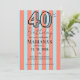 Get ready to party in style with our "Light Blue & Coral Stripes Modern Scripted 40th Birthday Invitation!** Bold, fun, and fabulously cheeky—just like turning 40 should be! With playful stripes and modern script, this invite sets the tone for a night of laughter, memories, and maybe a little mischief. Perfect for celebrating life, love, and all the fabulousness that comes with hitting the big 4-0! Let’s make it unforgettable! 🎉