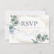 RSVP DE CASAMENTO | Flor de magnólia escamoteada e espuma de pénia azul-celeste, uma moldura geométrica de terrário multifacetada dourada adornada com folhas de cor d'água e flores. O reverso é uma cor complementar coordenada. Personalizar texto, estilo de fonte, cor e tamanho. Arte original criada para o BarefootBride™ por © WhimsicalArtwork™ - Esta é parte de um Conjunto completo de Artes de Casamento, chá de fraldas e outros artigos de papelaria para eventos semelhantes.