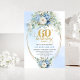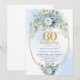 Convites Light blue floral white peony gold 60th birthday