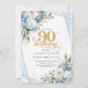 Convites Light blue gold brushed glitter 90th birthday