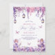Celebre o primeiro aniversario mágico do seu pequeno com este encantador convite de aniversário "Fada Primeiro"! Lindas flores lilás e roxas, lanternas penduradas, borboletas e fadas brancas adoram este convite marco. Convide seus convidados para se juntarem à magia enquanto celebram este inesquecível primeiro aniversário!