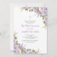Costume de barato impresso nos convites da Primeira Comunhão. Este bonito design feminino tem uma borda floral de cor d'água com flores roxas pastel e verde. Personalize o design com os detalhes da Primeira Comunhão do seu filho. O verso tem um padrão de faixa de aquarela roxa ou use o espaço para adicionar texto e fotos adicionais. Clique em Personalizar para escolher qualquer cor de fundo e editar as fontes de texto e as cores para criar um único convite da comunidade.