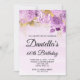 Crie seu próprio convite para comemoração de aniversário de 60 anos para seu amigo. Folha de ouro decorativa, decorada em folha de ouro, com um arranjo floral púrpura pálida pálida vintage contra uma lavagem a aquarela cor rosa-lilás. Personalize a cor branca de fundo do convite, bem como a cor do texto dos estilos de fonte modernos. As folhas de luxo foram criadas com elementos artísticos digitais que impressão gostam de uma foto.