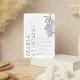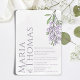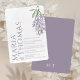 Esta design apresenta um convite para casamento elegante e moderno com caligrafia, floral, convite para o casamento de flores, com um lilás, lavanda e flor púrpura, com uma planta de flor de aquarela minimalista