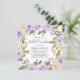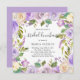 Convite floral púrpura para almoço com uma fronteira de flores pintadas a aquarelas em tons de violeta pastel, lavanda, lilás e marfim. Este elegante convite de almoço de noiva é perfeito para uma celebração de primavera ou verão.