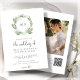 Um convite de casamento moderno e personalizável, com um delicado lírio do design floral do vale em volta de um monograma elegante, em um fundo limpo com uma elegante letra. No verso, há uma foto do casal feliz, e o código QR que você pode vincular ao seu site de casamento através da personalização.