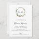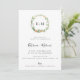 Coroa floral botânica moderna, convite à festa de noivado. Design de cartão, lírios de cor d'água em branco marfim e laranja de pêssego com delicado verde. Modelo de monograma e design de tipografia elegante. A parte traseira da carta, mostrada em verde estável, pode ser personalizada.