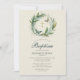 Um belo e doce convite batismo para uma menina, apresentando uma coroa de lírio das flores do vale com algumas borboletas caprichosas. Clássica caligrafia e fundo de linho na design. Um convite de na moda e classe para o batismo de uma menina ou Christening.