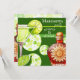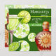 Convite de festas margarita divertida e caprichosa que você pode personalizar. O presente convite apresenta uma mistura de vidro margarita e limão de tamanho excessivo, com metade limão no final do convite. Tucked no canto direito é uma garrafa de tequila fofa com um girassol a rebentar. O fundo desse convite de festas margarita personalizável também tem três círculos com padrão amarelo e verde limão. O reverso deste cartão apresenta a garrafa de explosão solar e a margarita com espaço para adicionar todos os detalhes da sua festa e da hora feliz. Aproveite suas festividades!