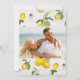 "Cinza Floral de Limão Citrus Yellow Foliage Noivado Invitation." Adicione sua própria foto de noivado e detalhes a este convite para festa de noivado. Limões pintados à mão, flores de limão e verde-folhagem dos citros, bem como uma cinza de madeira rústica e recuperada e cor branca para um tema de casamento da época moderna do na moda. Criada pela artista e designer internacionalmente acreditada, Audrey Jeanne Roberts, copyright.