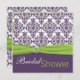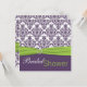 Este convite para chás de casamento tema damasco roxo e branco de lapões modernos tem um verde limão IMPRESSO EM fita e broche de joias de diamante nele. Se você precisar de ajuda para personalizá-la ou se quiser outros itens correspondentes, envie seu pedido por e-mail para niteowlstudio@gmail.com.