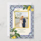 Salve as datas com uma reviravolta... de limão! Essas datas salvas são personalizáveis e apresentam azulejos e limões no estilo italiano. Esta salva de data faz parte de uma suíte de casamento.