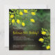 Um lindo convite de aniversário com limões amarelos e galhos de limoeiro. Frutas frescas em uma árvore cítrica, padrão frutado e brilhante. Perfeito para uma festa de aniversário no final do verão.