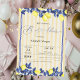 Limões de aquarelas sobre fundo listrado amarelo. Esses convites para chuveiros de bebês são facilmente personalizados para seu evento simplesmente adicionando seus detalhes.