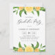 Convide familiares e amigos para o seu evento com este convite personalizável para festas de formatura cítrica. Apresenta ilustrações de cor d'água de limões, clementinas, florais e verde. Esse convite à graduação de citros será perfeito para qualquer tema de graduação. Personalize adicionando os detalhes do evento.