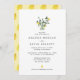Limões aquosos simples e elegantes verde-citrinos num convite de casamento num pote com a letra clássica abaixo. Na parte de trás do convite está o padrão de limão de aquarela.