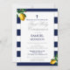 Listras de marinho, limões com o convite da Primeira Comunhão. O design é marinho com um texto de cor prateado e marinho que é facilmente alterado para suas informações. Escolha entre uma faixa de tipos de papel.