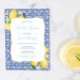 Este Chá de casamento / Chá de panela / Qualquer convite para eventos combina limões de aquarela pintados à mão e folhas verdes brilhantes com um fundo de azulejos vintage (azulejos azuis e brancos).