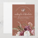 O convite para casamento simples e chic apresenta belos pessegueiros terracottas, ameixas, flores brancas de vassoura e folhas com bonito tipografia guiada, e um sólido fundo branco. Por favor, veja esta coleção de casamento moderna para coordenar acessórios de correio.