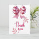 Carta de agradecimento dobrada fofa para os convidados do seu chá de bebê com um arco coquete rosa em aquarela e "Obrigado" em uma fonte elegante rosa. No interior, personalize sua mensagem de agradecimento em uma tipografia moderna simples e adicione seus nomes em uma fonte com aparência de assinatura.