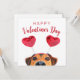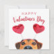 Linda ilustração do Dia dos Namorados feliz animal de estimação apresentando um cachorro curioso usando uma faixa de cabelo com coração vermelho. Saudação de feriado sazonal escrita em letras de tipografia moderna.