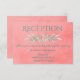 Este belo cartão de recepção cor-de-rosa é a solução para Casais que estão hospedando sua recepção de casamento em um local separado da cerimônia de casamento. Exibindo uma cor de pergaminho cor-de-rosa como pano de fundo, os detalhes da recepção são listados em fonte azul complementar. Há um adorável design floral rosa e verde bem debaixo do título. Veja a coleção para outros itens relacionados ao casamento. Personalize seu cartão de recepção hoje! Trabalho de arte Floral criado por: AMBilustrações http://www.etsy.com/shop/AMBillustrations/