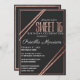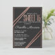 Elegante, chic, e preto moderno e falso imprimido rosa de ouro linear listrado e detalhe com tipografia rosa de ouro em fundo preto, convites de festas de celebração de 16 anos doce. Este design clássico e sofisticado é perfeito para a garota de aniversário de classe, tendências e na moda. Personalize com sua própria mensagem na frente e um monograma personalizado inicial no verso. Todas as impressão de fotos.