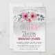 cinzas de boêmia, rendas florais, e convites para Chás de Lingerie rosa- Lê 'Por favor, junte-se a nós por A' no topo, em caracteres curvos, cinzas. Apresenta um fundo de efeito de aquarela em tons de cinza, (!) No topo está uma bonito camada botânica de cor verde-d'água cor-de-rosa pastel sobre um aspecto de vintage, fita de renda floral branca. Lê 'Lingerie Chá' em letras latentes, rosa e brancas. Personalizado com o nome de convidado de honra em rosa com sombra. As informações personalizadas sobre chás de panela de lingerie, incluindo detalhes e tamanhos de RSVP, são impressas em letras modernas na parte inferior. O dorso tem uma coordenação, um fundo rosado feminino. Feminina, estilo vintage, corações florais cor-de-rosa, chás de festa de solteira convidadas prontas para serem personalizadas com seus próprios detalhes de chá de panela. Complementa casamentos florais, cores de casamento cor-de-rosa e cinza, casamentos de cor-de-água, temas de casamento florais e estilos de casamento de renda vintage. Temos mais convites de chá de panela em nosso compro Zazzle.com/angela65.