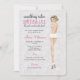 Dê à noiva um chá de lingerie sexy com estes convites cheios de noiva em nada além dos calcanhares e calcinhas! Fundo de lingerie de rendas com sutiã e calça com tamanho de noiva. Várias opções disponíveis para personalizar o estilo de cabelo, a cor do cabelo e o tom de pele.