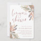 Convide os convidados a comemorar a noiva a estarem com estes convites de chá de panela elegantes e românticos de lingerie numa paleta de cor neutra e suave de verde sábio, taupe, rosa empoeirado, e argila de terracota leve. O simples design floral apresenta o "chá lingerie" em um script manual casual, com os detalhes do evento alinhados no canto inferior direito, juntamente com o espaço para os tamanhos da noiva. Buquês de flores aquáticas e folhagem de estilo boho nos cantos completam o design.