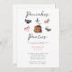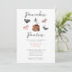 Celebre a noiva a ser com um chá chic e elegante de lingerie, onde panquecas e calcinhas são as estrelas da noite! Este convite clássico apresenta uma ilustração com aquarela de quatro peças de roupa interior em rosa e preto, uma pilha de panquecas jovens com frutas no topo, e o título "Panquecas e Calcinhas" na caligrafia moderna. É a maneira perfeita de convidar seus convidados para uma noite de diversão, risos e lingeries, com um tema "Algo sexy, algo doce".