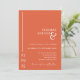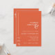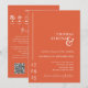 Este convite de casamento, elegante e minimalista, foi feito tendo em mente a elegância contemporânea. Ele apresenta um esquema ousado de cor laranja verona por pôr do sol, oferecendo um aspecto impressionante, mas eterno, misturando linhas limpas com um toque de glamour. Adicione o URL do seu site de casamento que atualizará o código QR (ou exclua-o se não for necessário). O design também inclui uma linha cronológica personalizável de eventos, completa com ícones ajustáveis para se adequar à sua celebração exclusiva. Perfeito para casais que desejam uma ambição moderna e na moda para o seu dia especial. Você pode mudar o texto e a cor de fundo para corresponder ao esquema de cores do dia do casamento, se desejar. Clique em personalizar/personalizar para edição adicional.