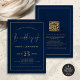 Convites Linha de Script Elegante Código QR Marinho Casamen