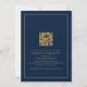 Limite de Linha de Script Elegante Código QR Marinho Casamento Dourado Azul. Disponível digitalmente e impresso. elegância clássica em azul escuro e ouro com este design de texto. O Casamento de está em um roteiro de na moda, e o resto das palavras que você pode personalizar facilmente. No verso, adicione um código QR ao seu site de casamento para a conveniência de seus convidados digitalizarem para o rsvp e verem mais detalhes. Você também pode alterar a cor do texto e do plano de fundo em cada lado, se desejar, por meio da opção editar mais.