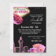 Este convite personalizado apresenta um tema glamouroso de Las Vegas. O sinal de boas-vindas é colocado no canto superior esquerdo com um par de dados brilhantes tocando dados com sotaques dourados fotografados à sua frente. A linha do horizonte de Las Vegas é impressa na parte inferior com cartões de neon e chips na frente. O fundo é um preto sólido com um confete brilhante cor-de-rosa sobre as partes superior e inferior. A parte traseira do convite é um design de textura de folha rosa quente com configuração de brilho correspondente. É perfeito para um fim de semana de despedida, aniversário ou outro evento especial.