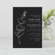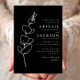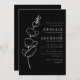 Este convite de casamento simples e elegante apresenta um traçado branco gracioso de um giz de eucalipto. Personalize o texto branco com os primeiros nomes da noiva e do noivo na fonte serif e o texto restante no script sans serif e manuscrito em um plano de fundo preto. A parte traseira da placa é preta e sólida.